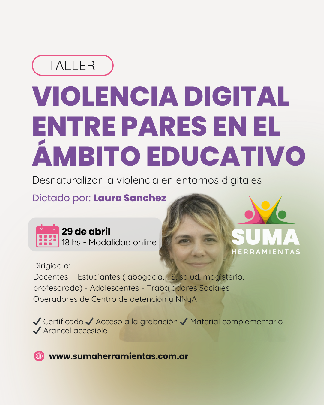 En este taller abordaremos las distintas formas de violencia digital entre pares en contextos educativos, sus impactos emocionales y legales, y las herramientas para prevenir, detectar y acompañar estas situaciones. Se trabajará con ejemplos prácticos, lenguaje claro y recursos aplicables en el aula, en instituciones y en espacios comunitarios.