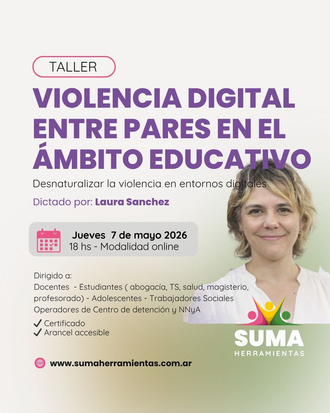 En este taller abordaremos las distintas formas de violencia digital entre pares en contextos educativos, sus impactos emocionales y legales, y las herramientas para prevenir, detectar y acompañar estas situaciones. Se trabajará con ejemplos prácticos, lenguaje claro y recursos aplicables en el aula, en instituciones y en espacios comunitarios.